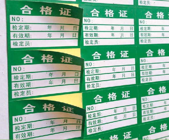 合格證標簽一般有服裝吊牌標簽,PVC標簽,不干膠標簽,銅版紙標簽等.其中用于服裝行業主要是服裝吊牌合格證;用于家電電器主要是產品合格證標簽;貼于外箱面主要是使用不干膠標簽銅版紙標簽居多,還要根據合格證標簽黏貼時間選擇不同材質的膠水.
